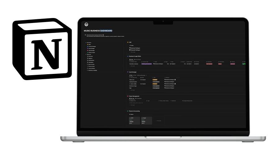 Organiza tu negocio, registros, y finanzas en tu propio dashboard de Notion.